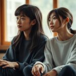 A serene, intimate moment between two young Japanese individuals as they engage in meaningful conversation, their expressions radiating mutual trust and understanding. Soft, warm lighting gently illuminates their faces, creating a sense of emotional intimacy. The background fades into a blurred, neutral setting, allowing the connection between the pair to take center stage. Their body language conveys openness and attentiveness, reflecting the careful cultivation of a deep, lasting bond. The scene captures the essence of building trust and fostering genuine communication.